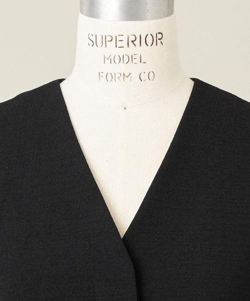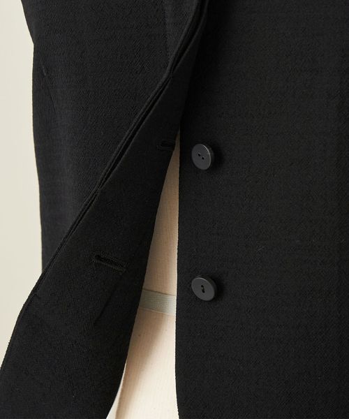 ボタンを比翼仕立てにしてすっきりとさせてジャケットとのあわせも意識したデザイン。