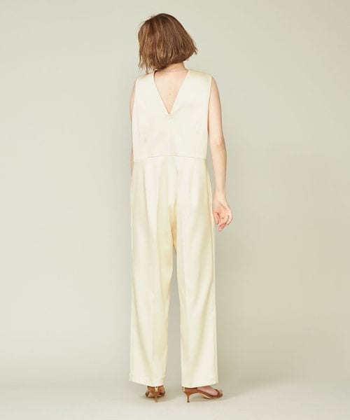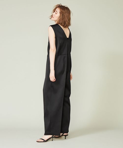 <conte>サテン ノースリーブ オールインワン