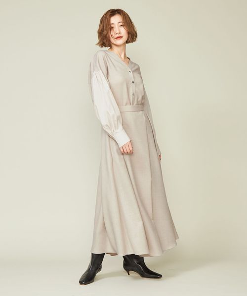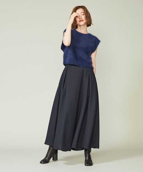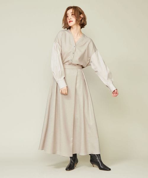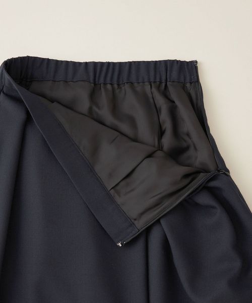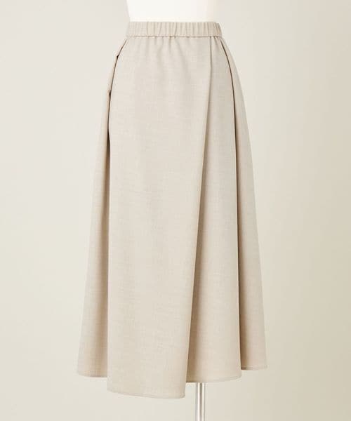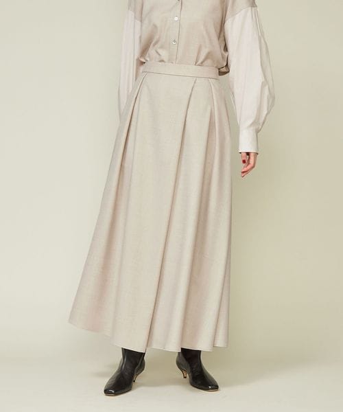 アシンメトリーなタックにこだわりドレープの出かたに変化をつけたロングスカート。