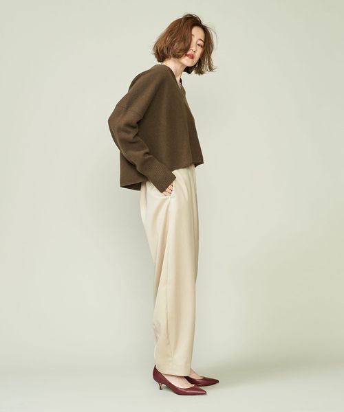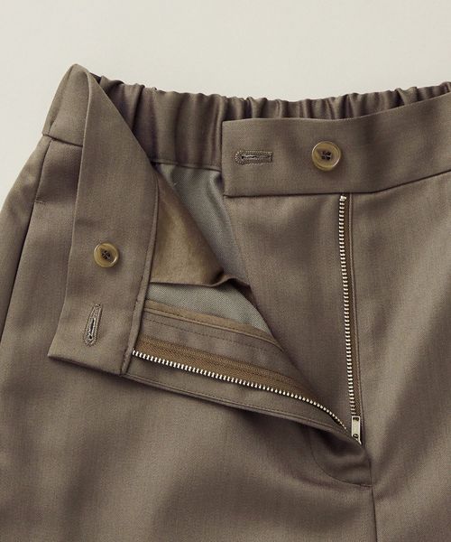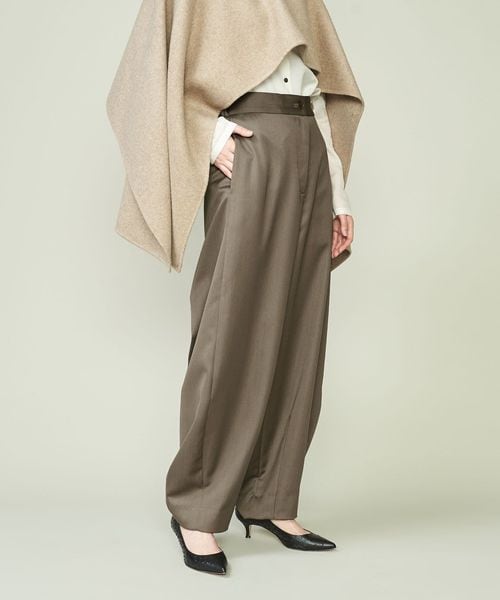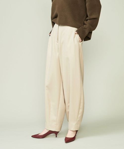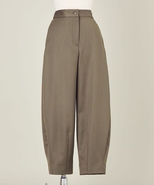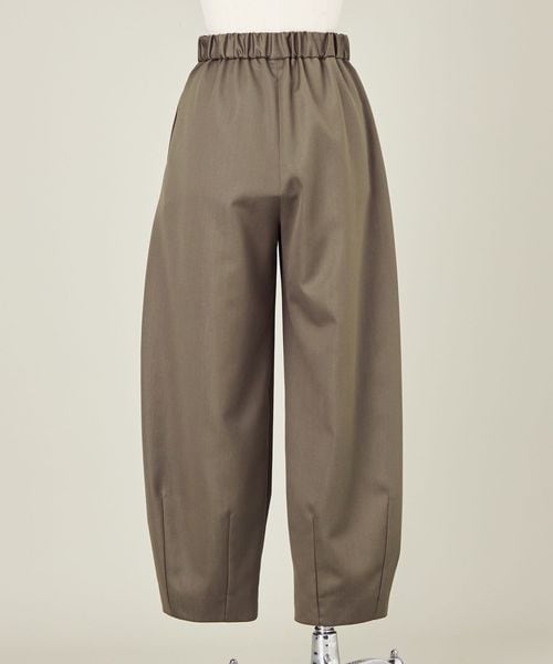 裾をダーツで絞ったラウンドシルエットのパンツ。
