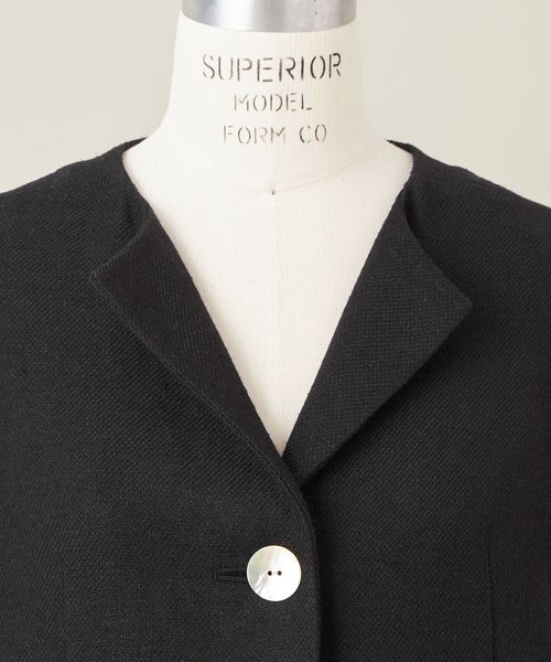ボクシーシルエットで肩まわりのカッティングや、大胆なサイズのアコヤ貝ボタンがアクセントのベスト。