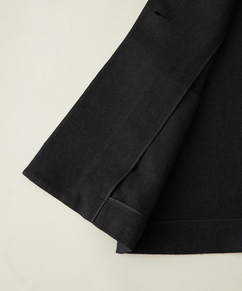 麻とシルクを交織した先染めの生地はシルクの光沢とナチュラルなフシを残し雰囲気ある生地感に仕上がっています。