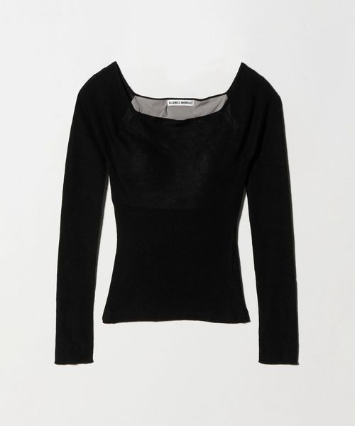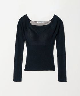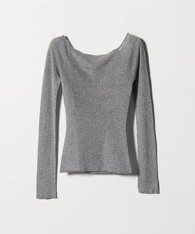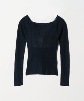 カシミア混の再生繊維を使用したやわらかく肌馴染みのよい風合いが特徴のオープンショルダーニット。