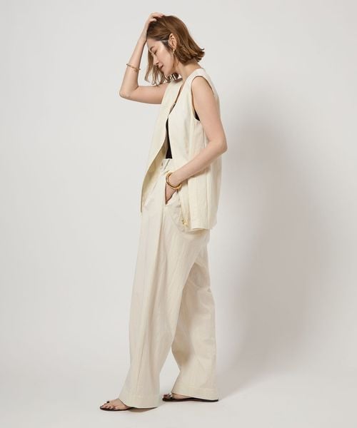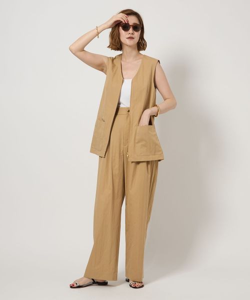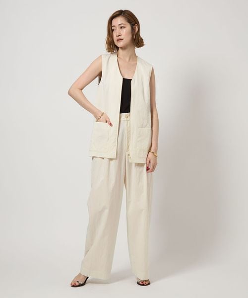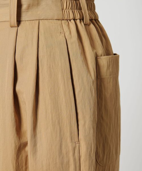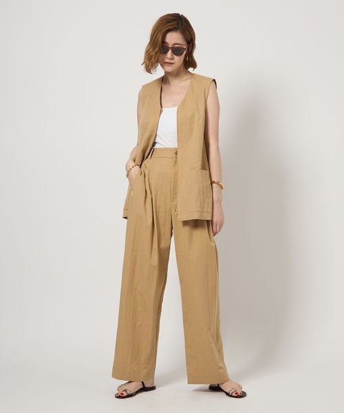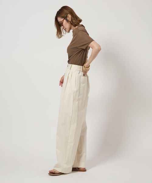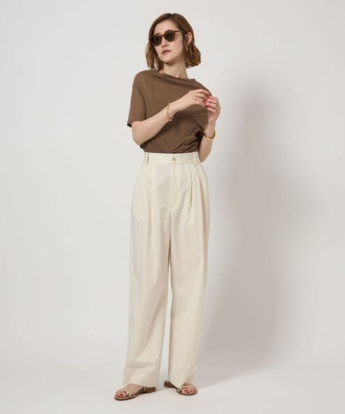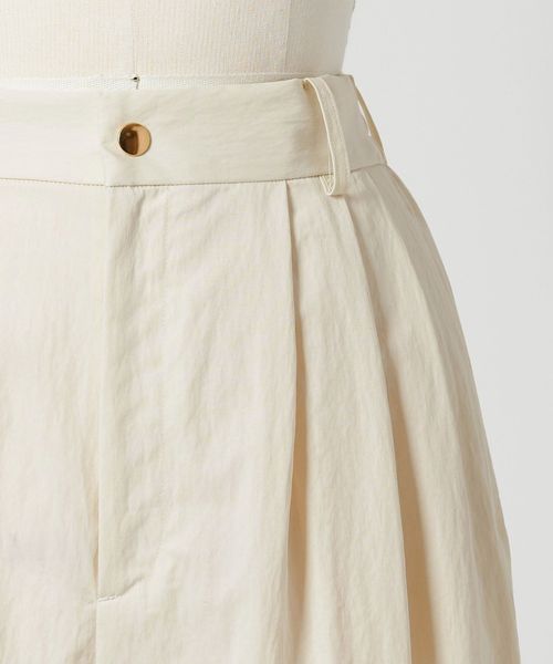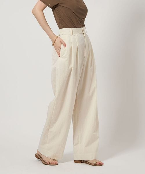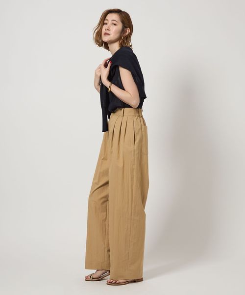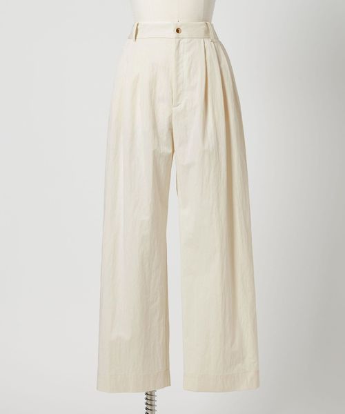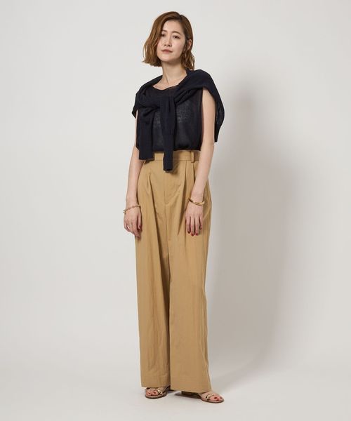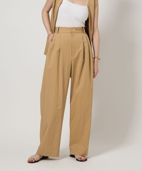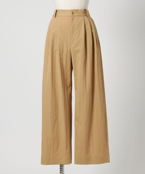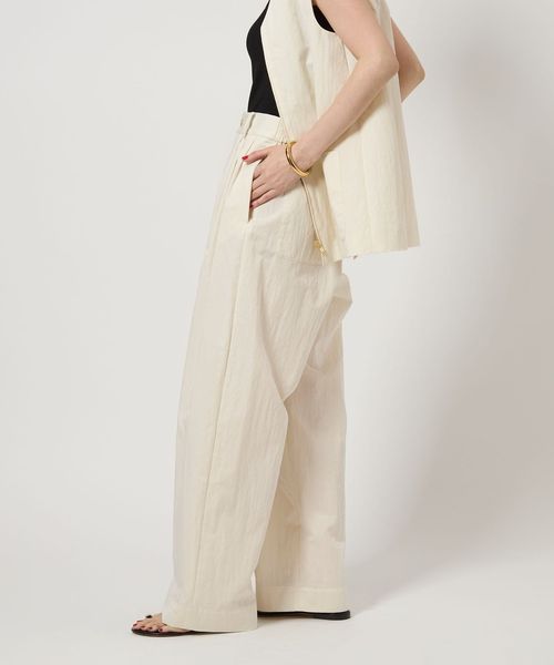 ウエストタックが特徴の軽やかな素材感のワイドパンツ。