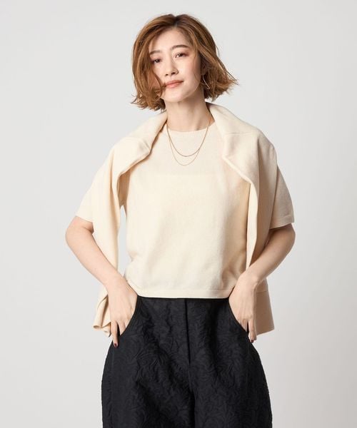 カットソーや同シリーズのプルオーバーの肩にかけて着用するのもおすすめです。