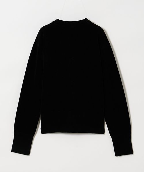 やさしい肌触りのモール糸と裏にレーヨン糸をまわして、強度と落ち感を出しつつふんわりと編み立てて作ったニット。