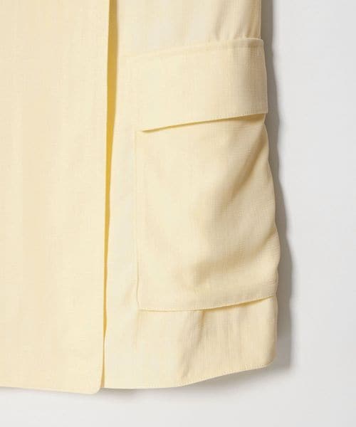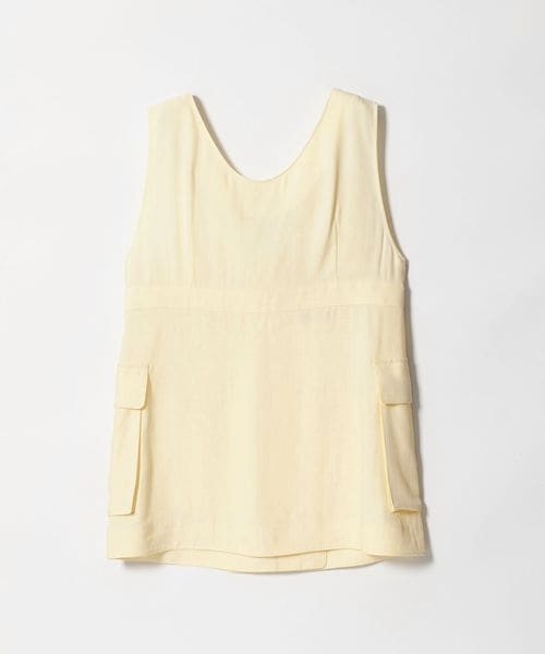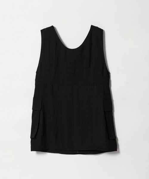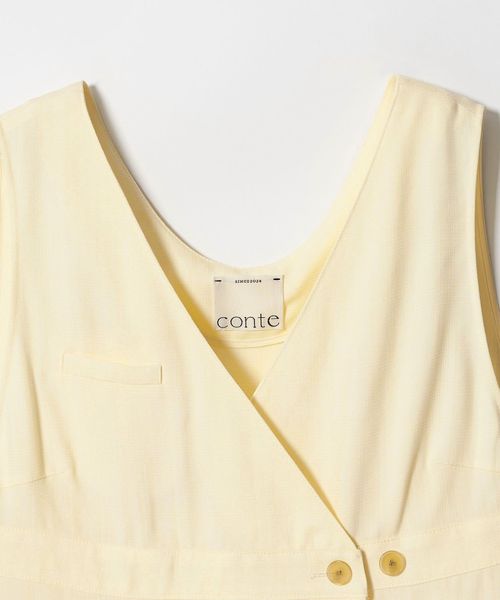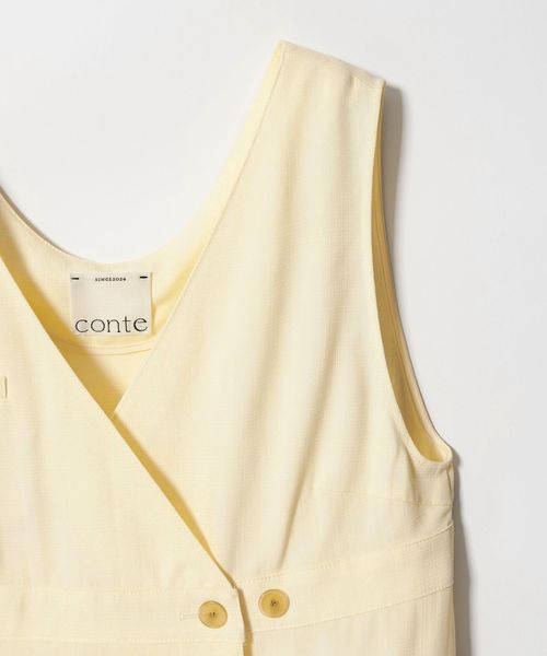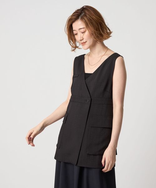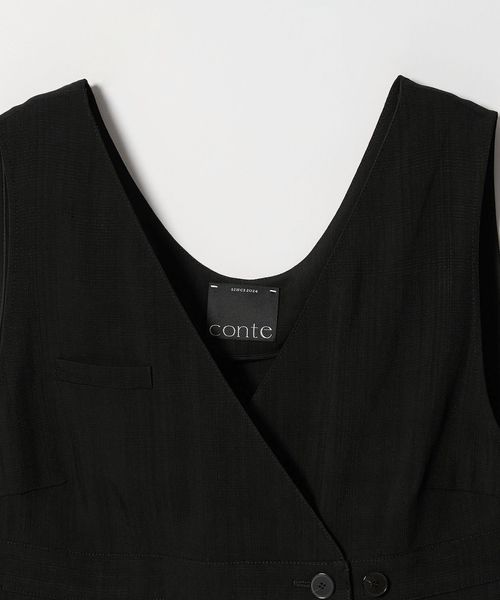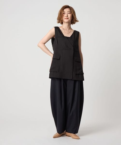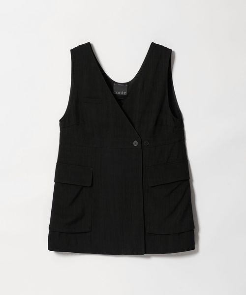 着こなしにアクセントを添えてくれるエプロン型のジレを提案。