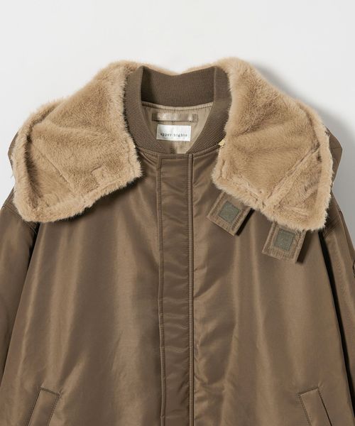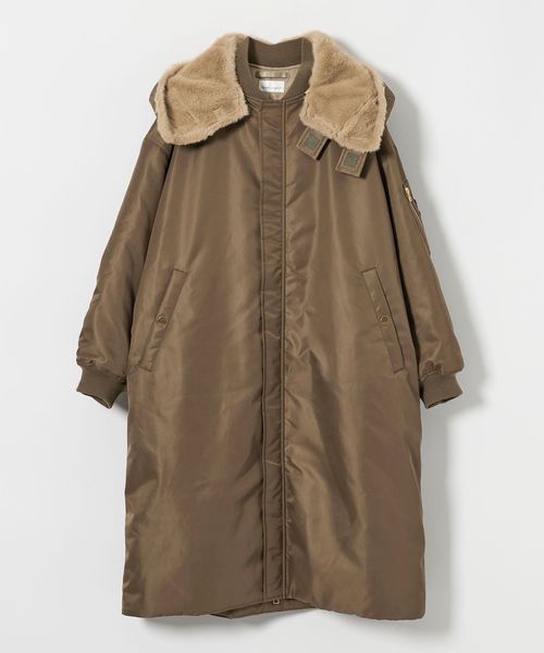 フェイクファーの毛足をインラインよりも短くしてカラーも変えた別注デザインのミリタリーコート。