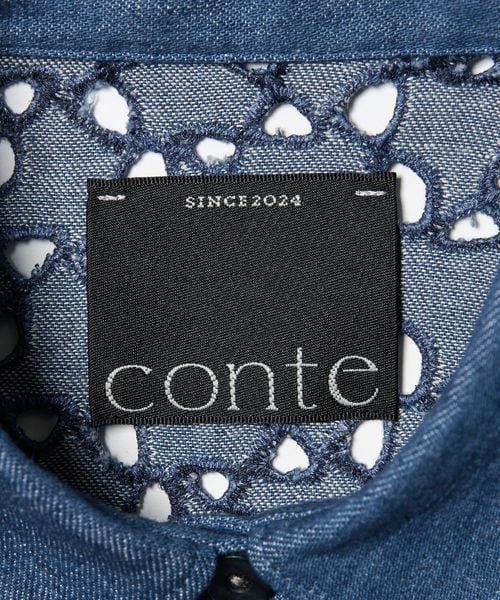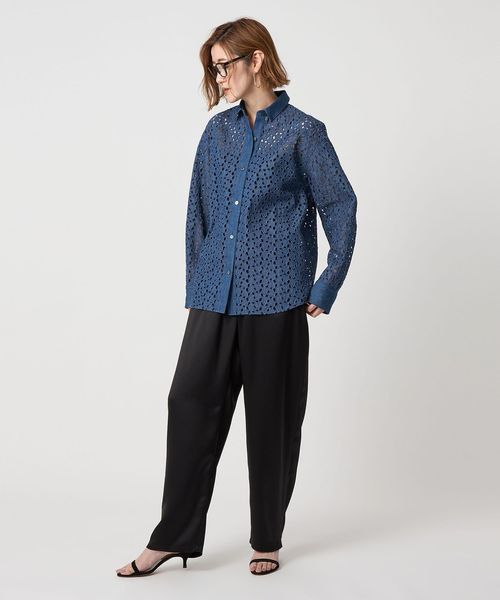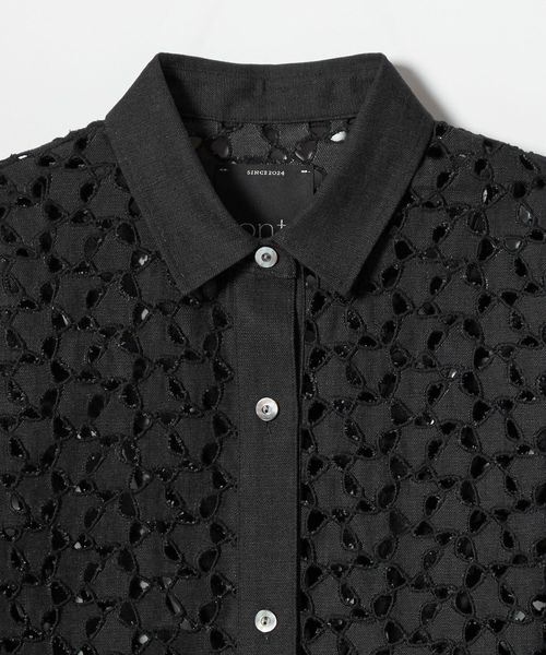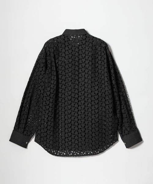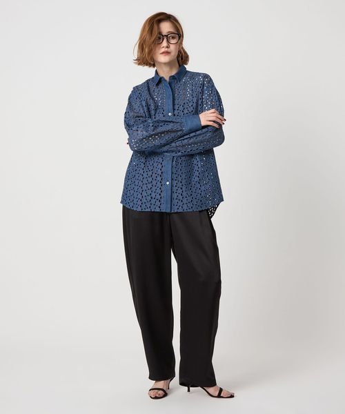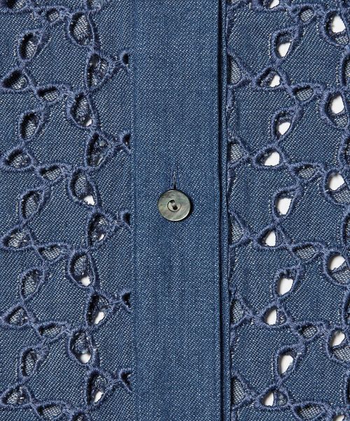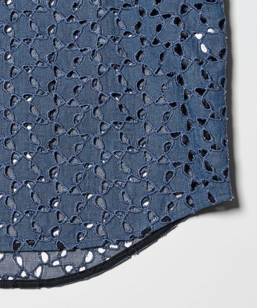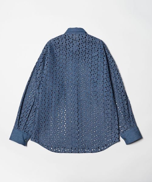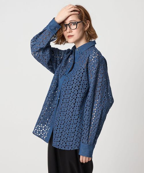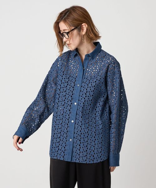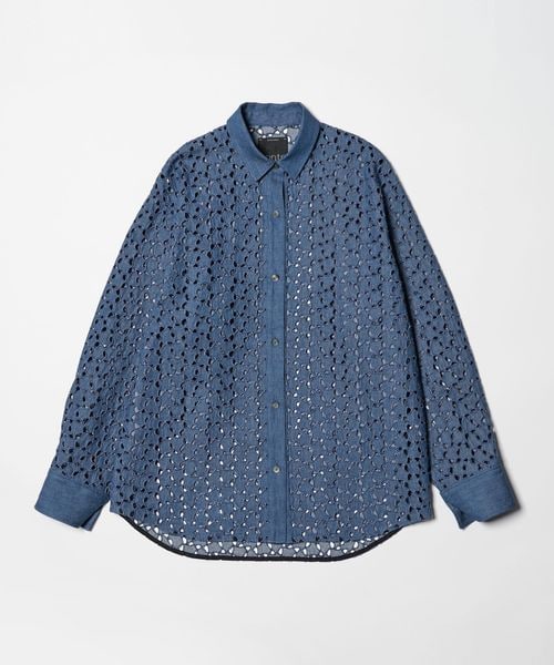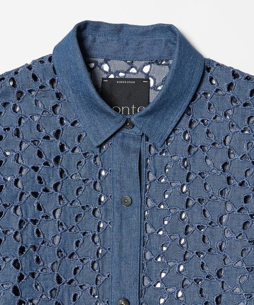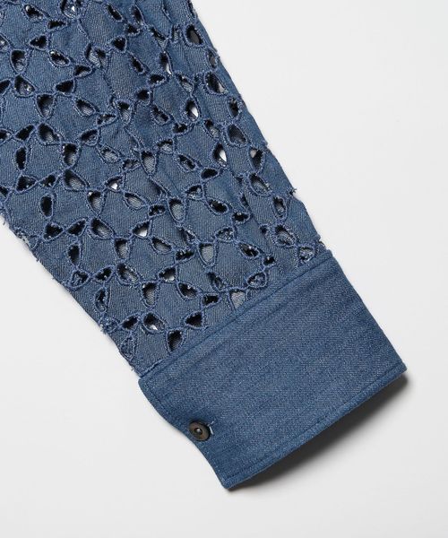 生地感を楽しめるカットレースデザインのデニムシャツ。