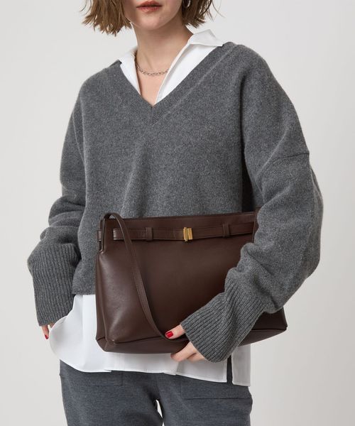 ショルダー以外にもあえてクラッチバッグのように抱えて持つのもおすすめです。