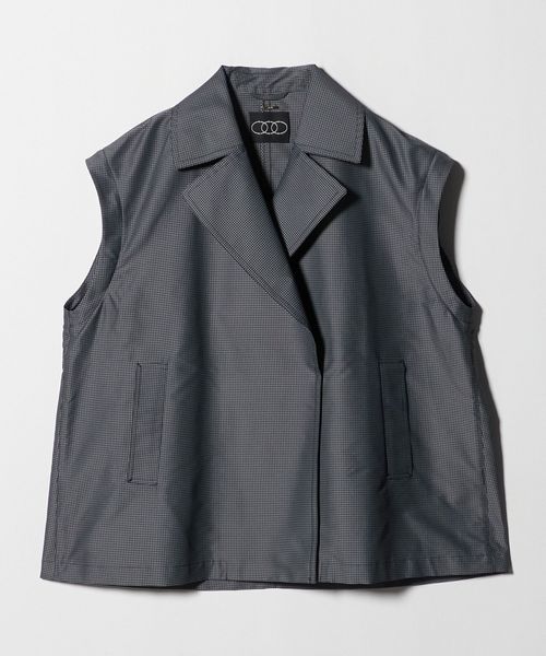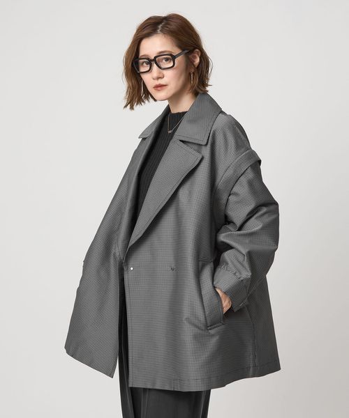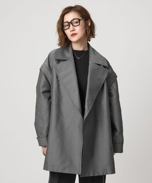 袖を取り外してノースリーブとしても着用可能な千鳥格子柄2WAYショートコート。