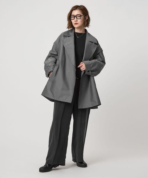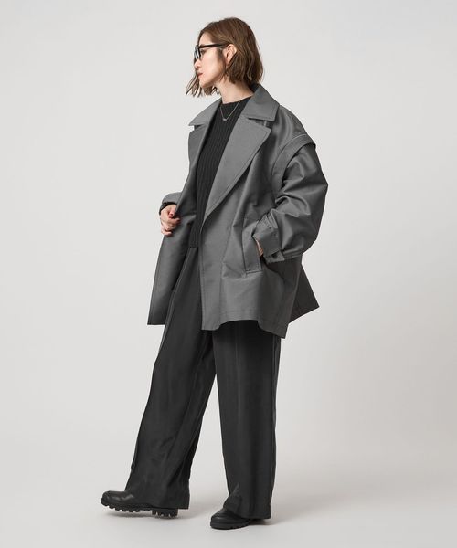 ドロップショルダーでゆとりのあるサイズ感のショートコート。