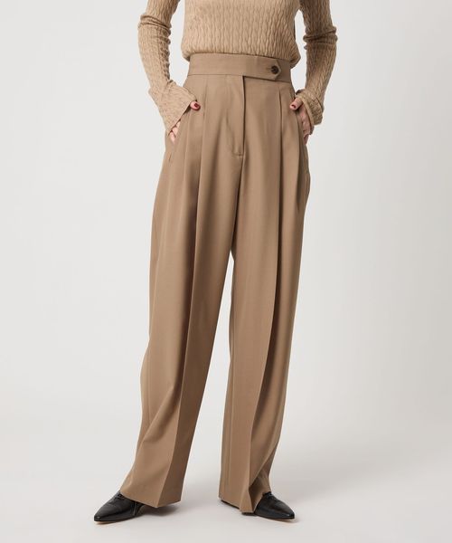太めのウエストベルトに2タックの入ったセミワイドストレートシルエット。