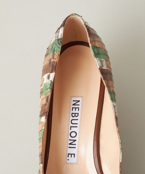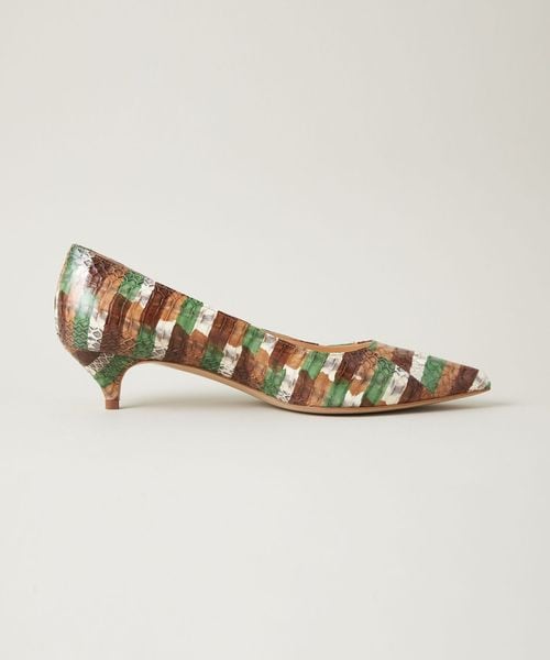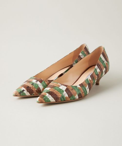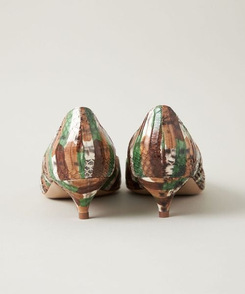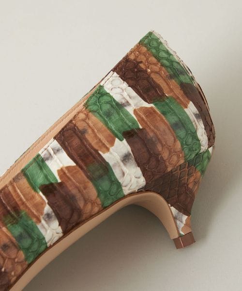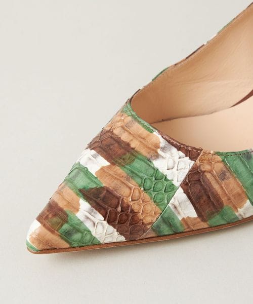 足元を華やかに演出してくれるリアルパイソンにペイントを施したポインテッドパンプス。