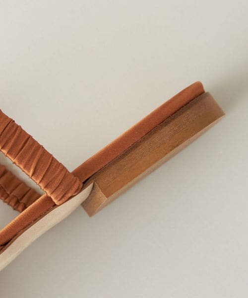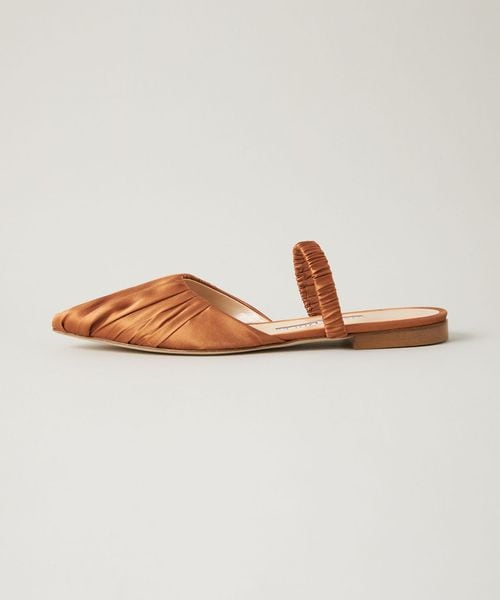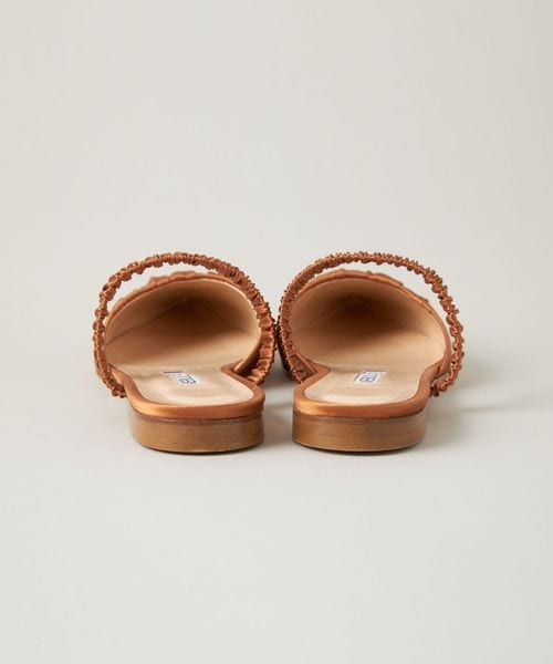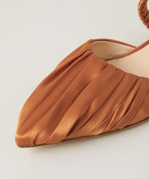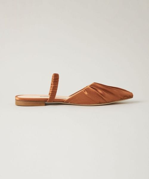 サテン生地を折り畳んだ凹凸感が愛らしいミュールサンダル。