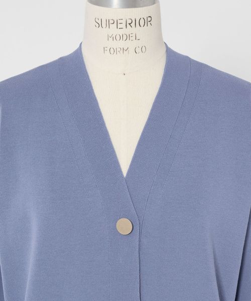 ハイゲージで美しい表面感のミディアムレングスのVネックカーディガンです。