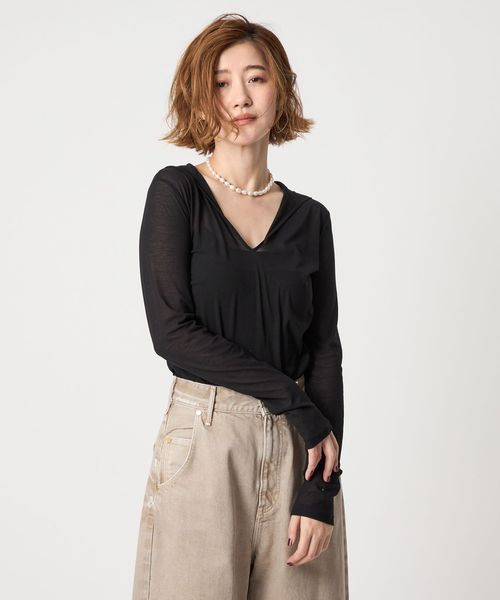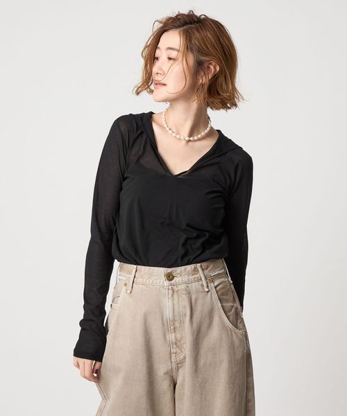 シアー感があり軽やかに着用いただけるフーデッドカットソー。