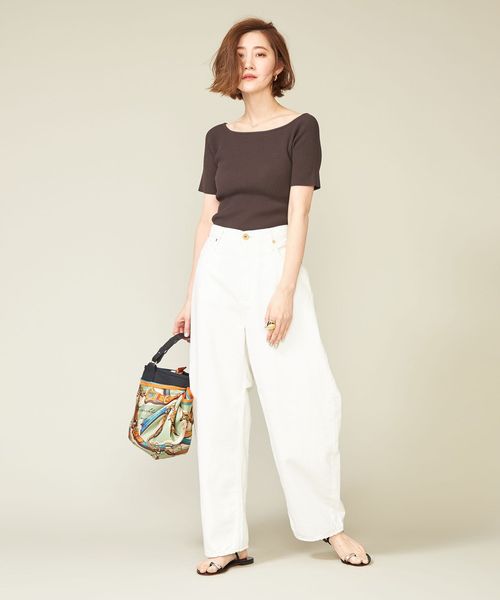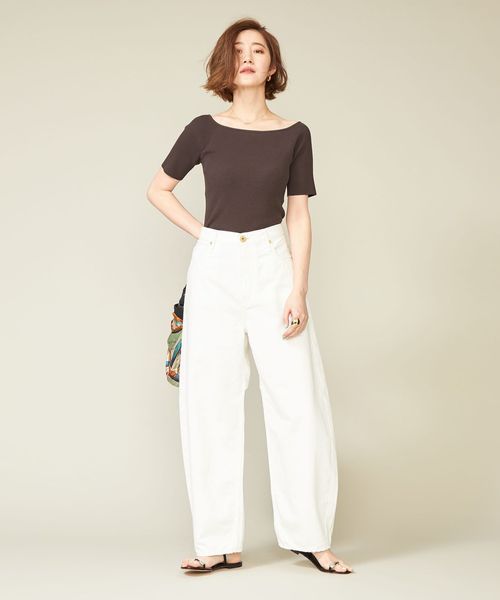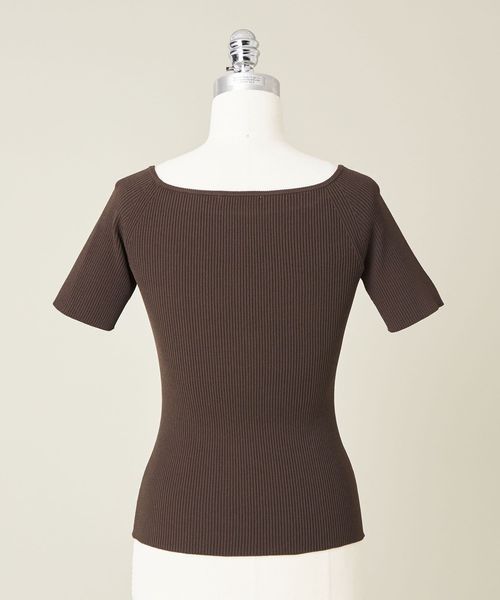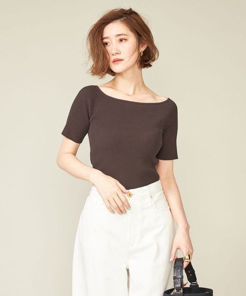 デコルテを美しく見せてくれる開きの広い襟元が女性らしさを演出してくれます。