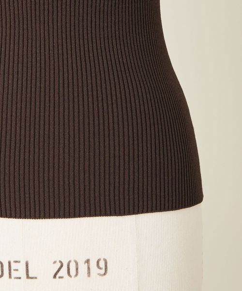 別注で着丈を長くしてタックインしても着やすいバランスに仕上げたリブニット。