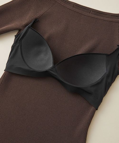 着心地や、女性を輝かせるデザイン性を持つニットウェアと、高度な技術力を持つ下着製造メーカーにより専用開発されたエアリーな着け心地のブラカップ。