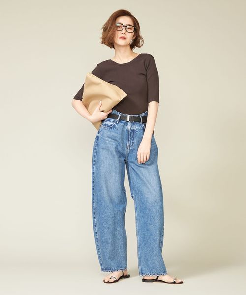 別注で着丈を長くしてタックインしても着やすいバランスに仕上げたクルーネックニット。