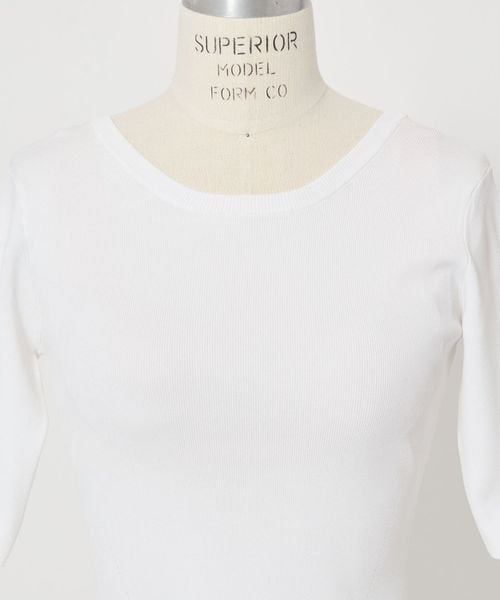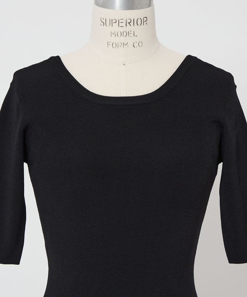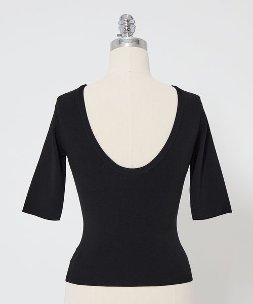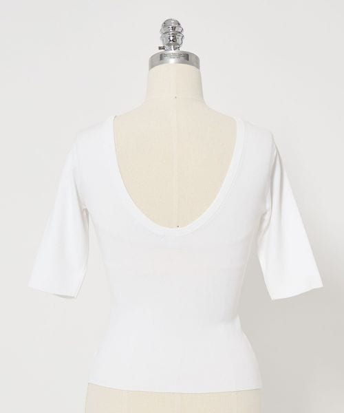 フロントはクルーネックライン、バックは大きく背中を見せるラウンドネックラインが特徴です。