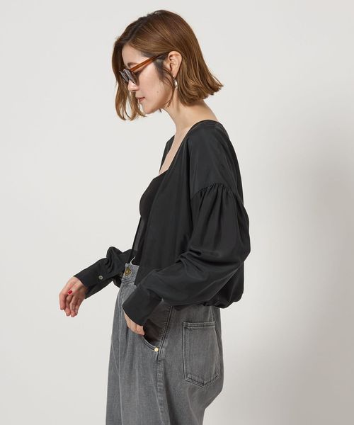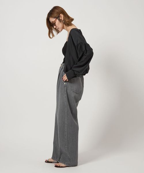 肩や裾にギャザーを施して華やかで女性らしい印象のアイテムです。