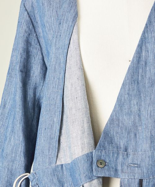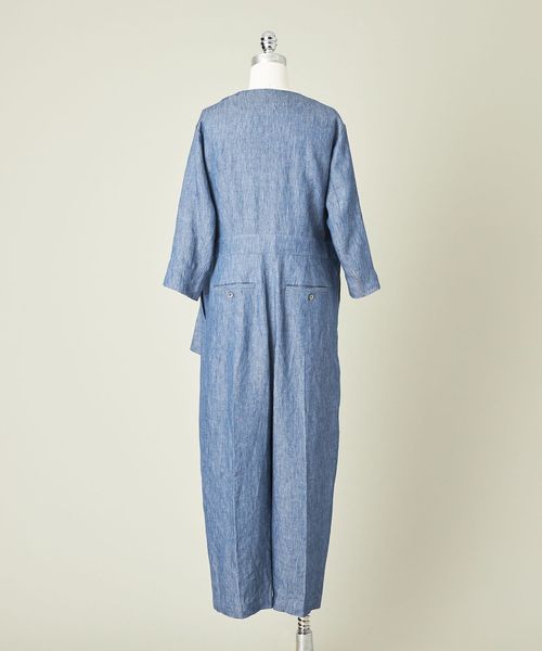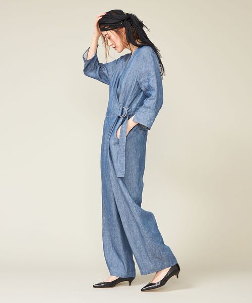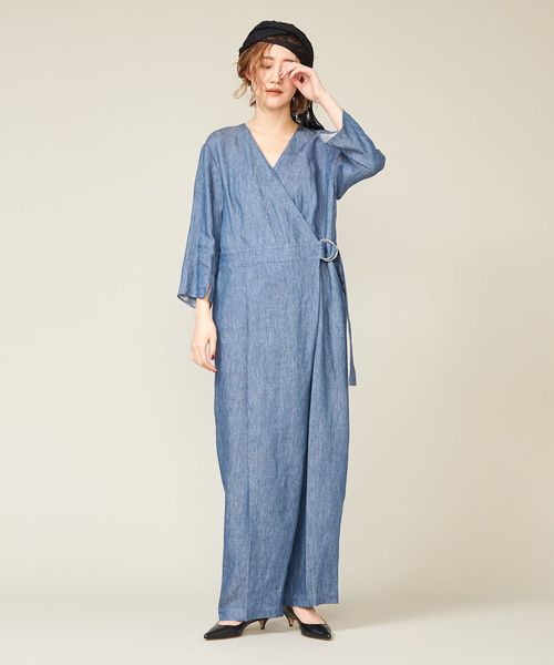 麻の表情とラップデザインで大人の抜け感があるオールインワン。