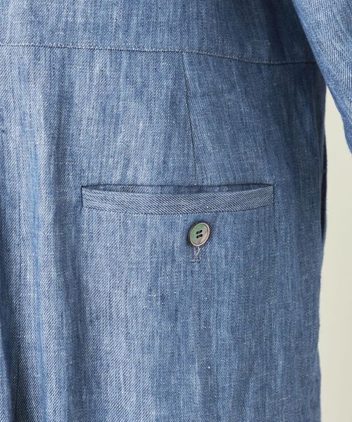 コバルトカラーは縦糸の麻を中白染めにしてインディゴブルー風に染めてデニム風に仕上げた麻素材。
