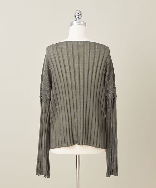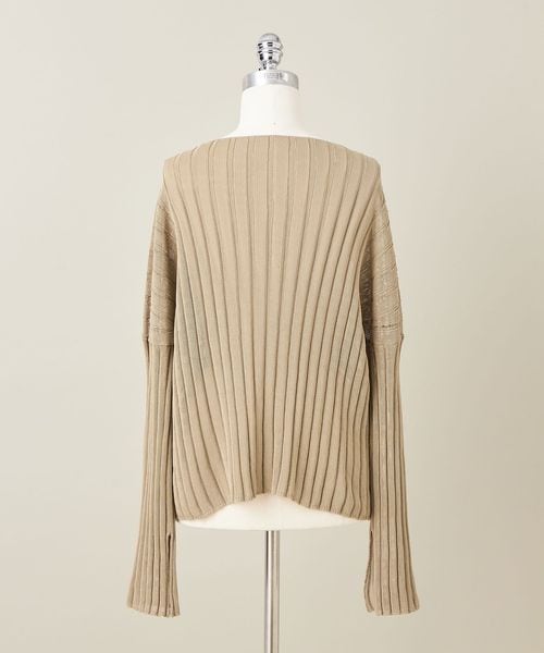 やや長めの袖にスリットを施したワイドリブのボートネックニット。