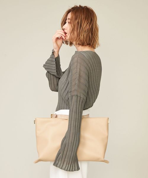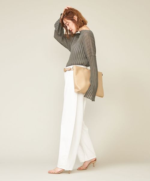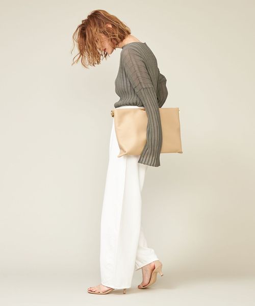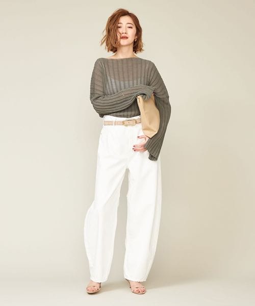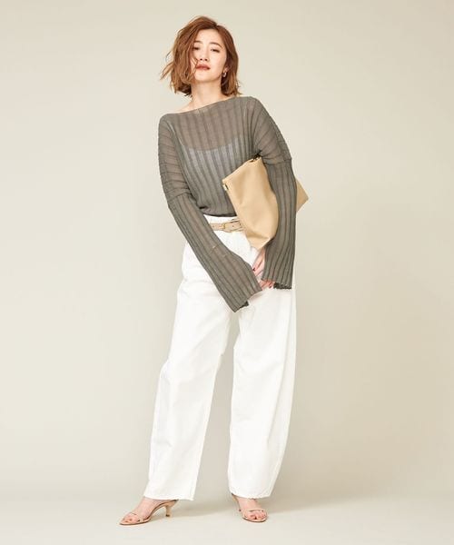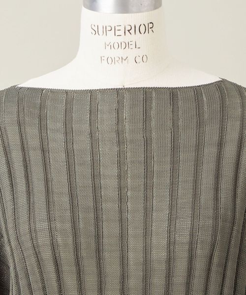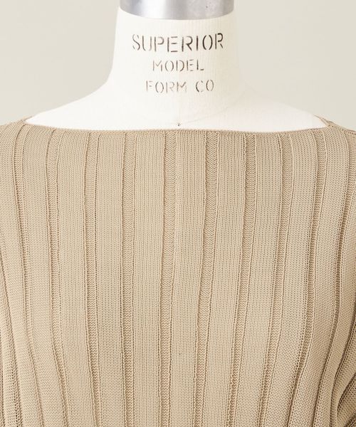 直線的なラインながらも着た時に女性らしく見えるシルエットにこだわったワイドリブのボートネックプルオーバー。