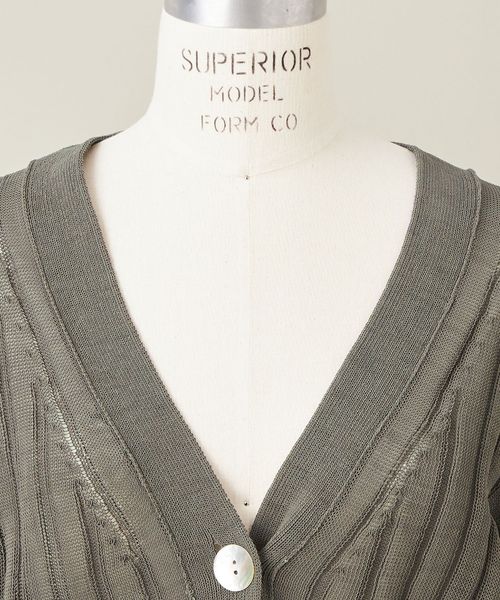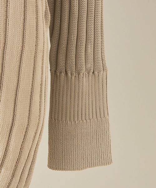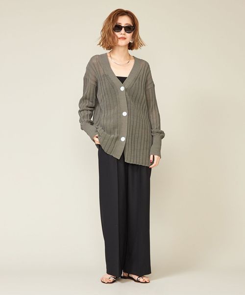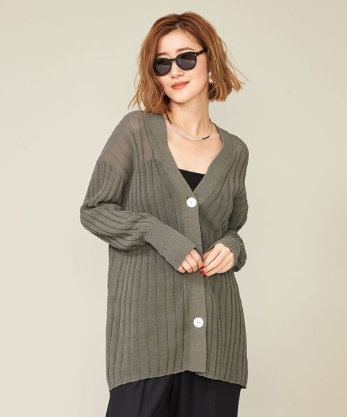 大きめな貝ボタンがアクセントになったワイドリブカーディガン。