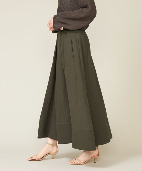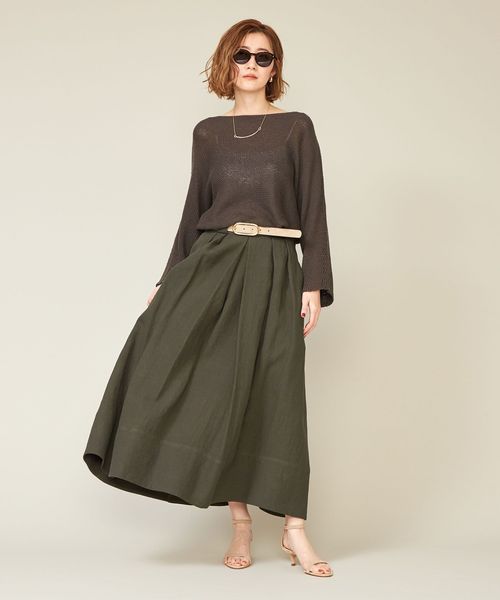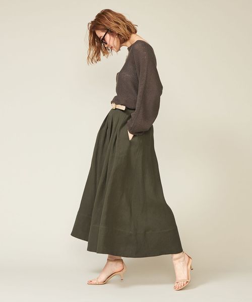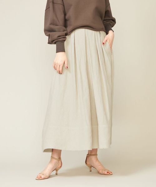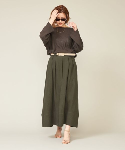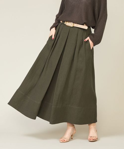 タックや太めのベルトループでメンズライクなディテールを取り入れたスカート。
