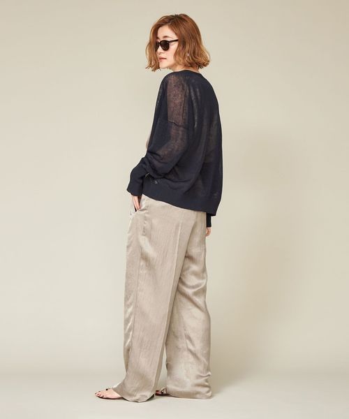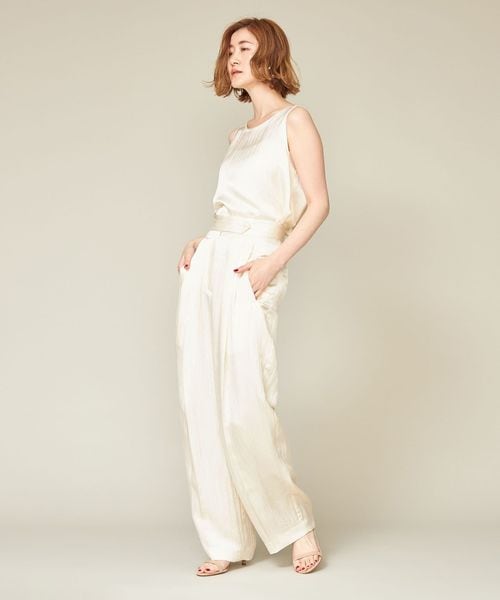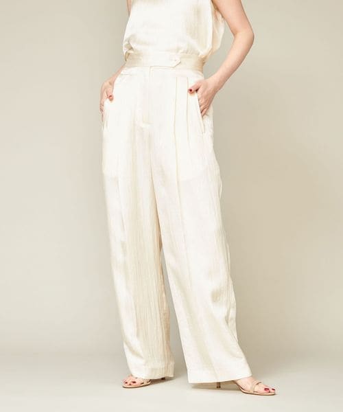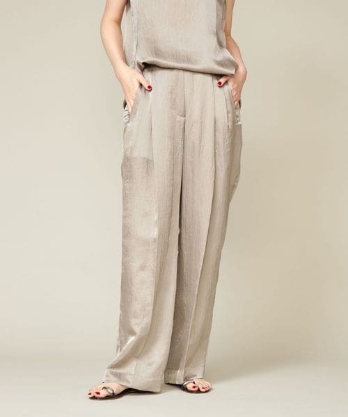 艶感が上品なサテン素材を使用したタックワイドパンツ
