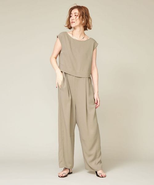 <conte>タック ノースリーブ オールインワン