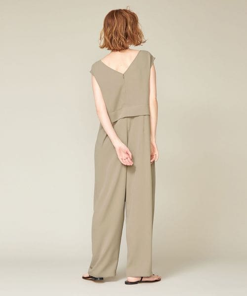セットアップのようなデザインで一枚で様になるきれいめオールインワン。