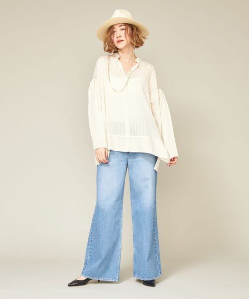 <conte>ドビーストライプ ボリュームスリーブブラウス