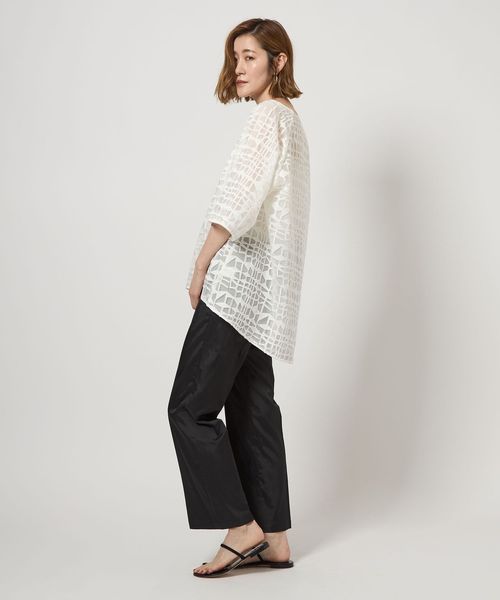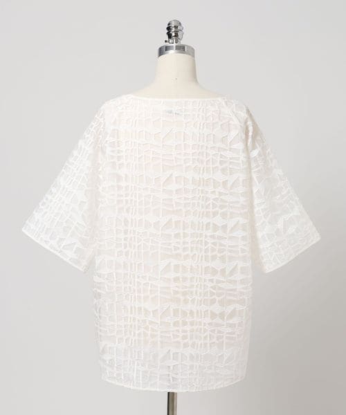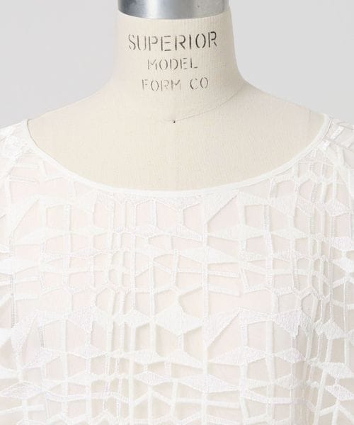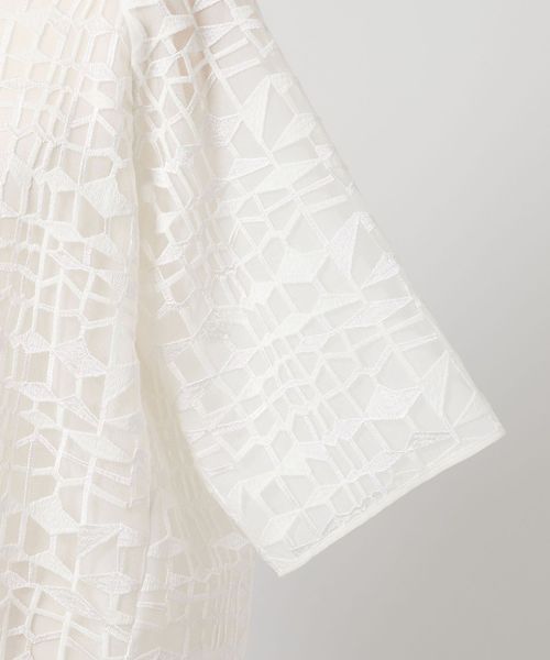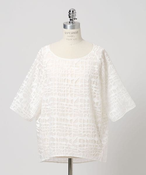 刺しゅう生地をシンプルなアイテムへ落とし込み袖の長さや着丈のバランスにこだわったレースブラウス。