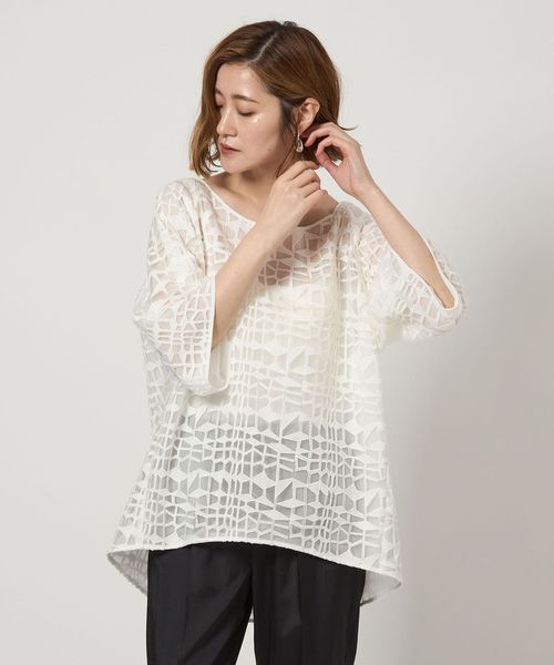シアー感のある刺しゅうデザインが着こなしの主役にぴったりのビッグシルエットブラウス。
