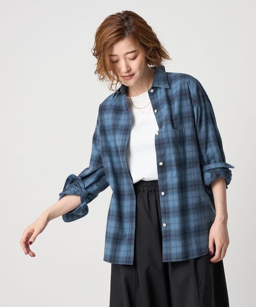 程よくゆとりのあるシルエットのチェック柄シャツ。