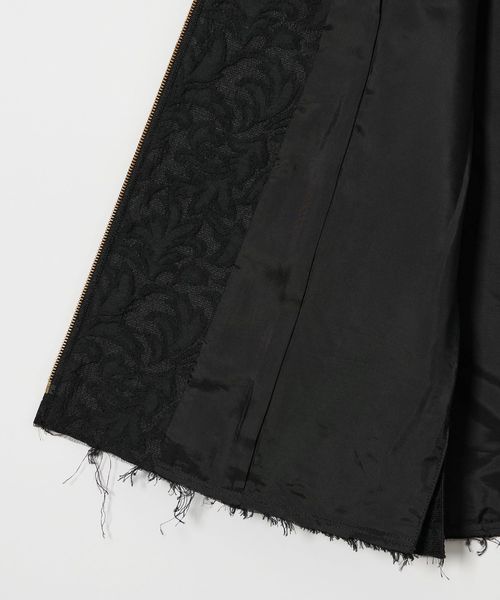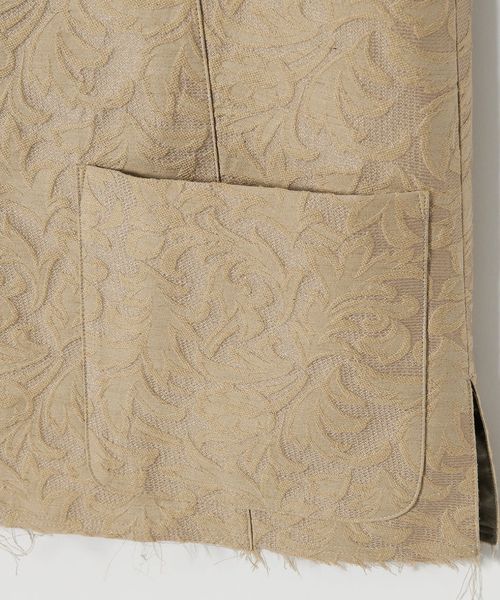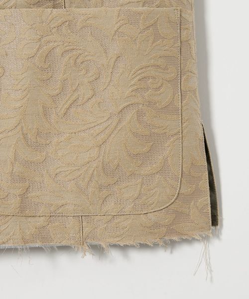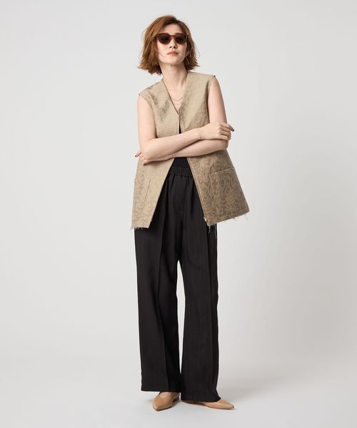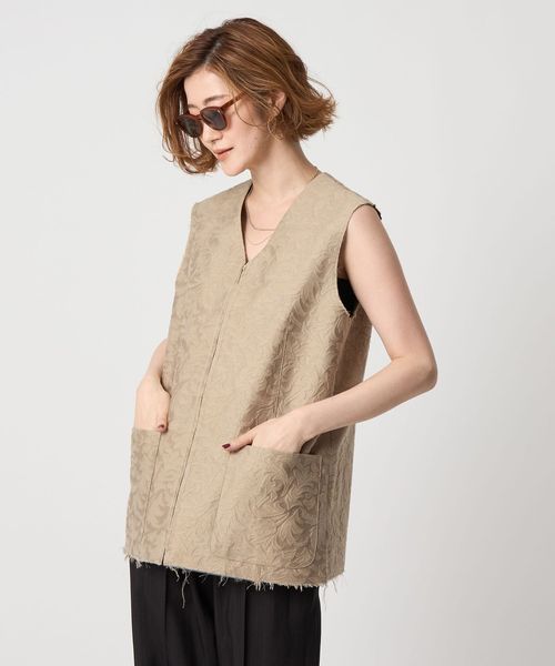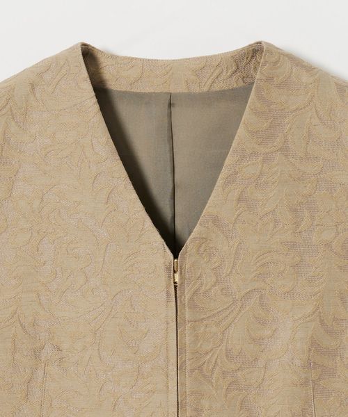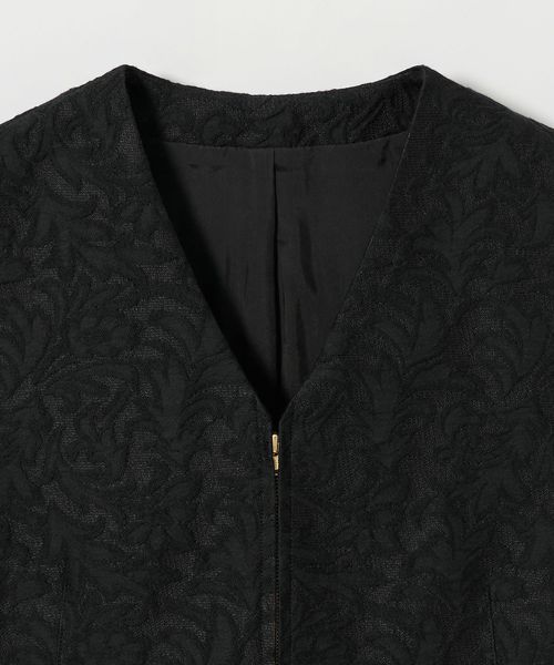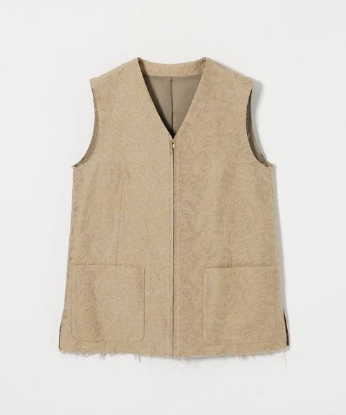ペイズリー柄のジャガード生地をファスナー仕様のジレに乗せることで、カジュアルに着やすい印象に仕上げました。