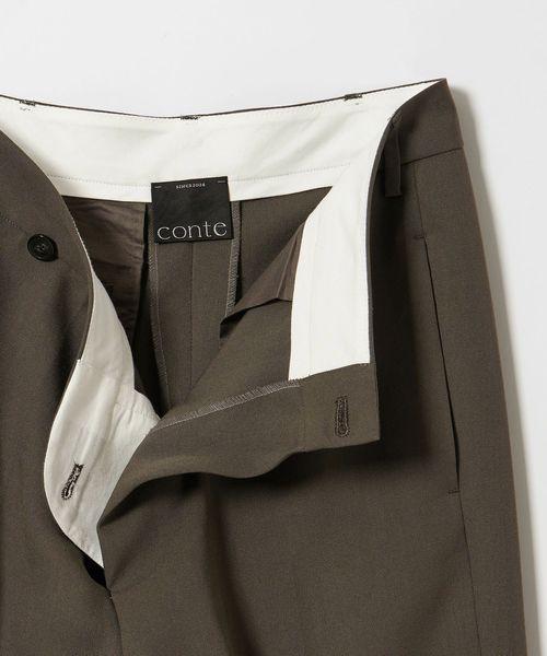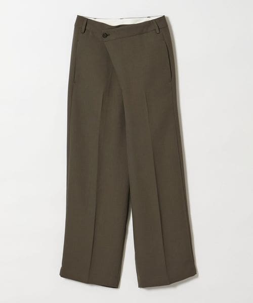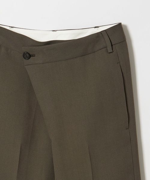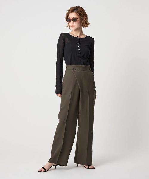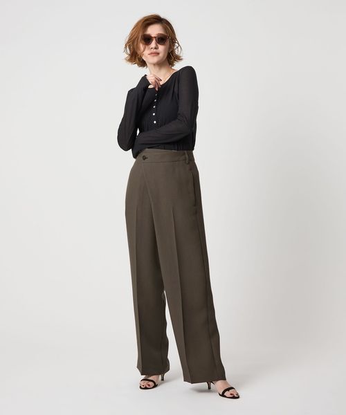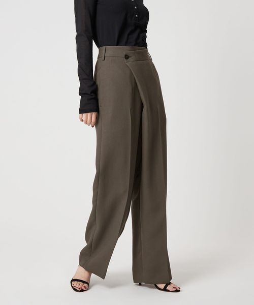 フロントに深いラップデザインを大胆に施したきれいめパンツ。