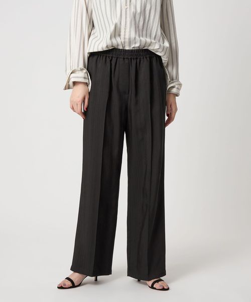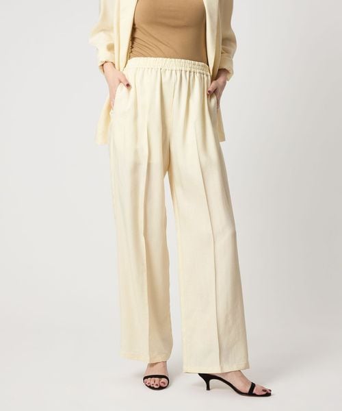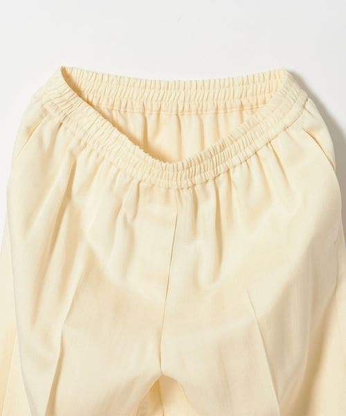 ウエストゴムのセミワイドイージーパンツはセンタークリースを施してきれいめな印象に仕上げた一枚。