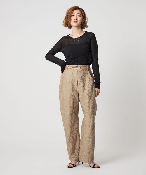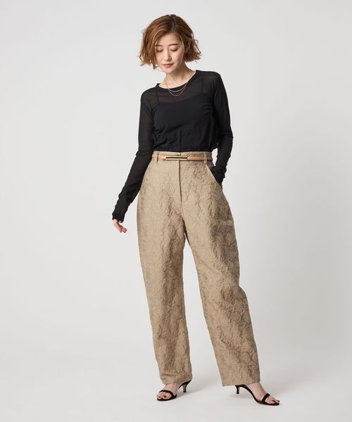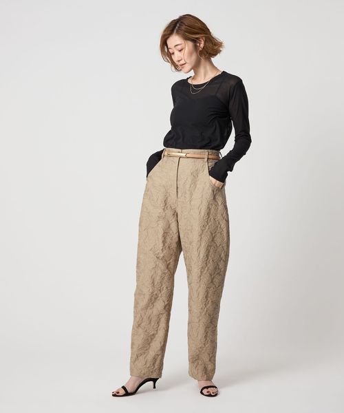 ペイズリー柄のジャガード生地をカーブシルエットのパンツに乗せることで、カジュアルに着やすい一枚です。