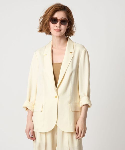 さらりとしたハリのある素材を用いて作った一枚仕立ての軽やかなテーラードジャケット。