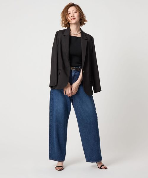 抜け感のあるジャケットはデニムパンツにあわせてカジュアルにも着やすいアイテムです。