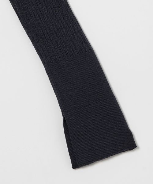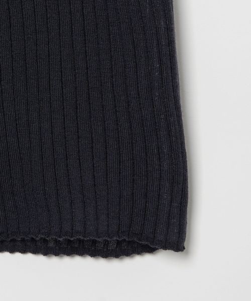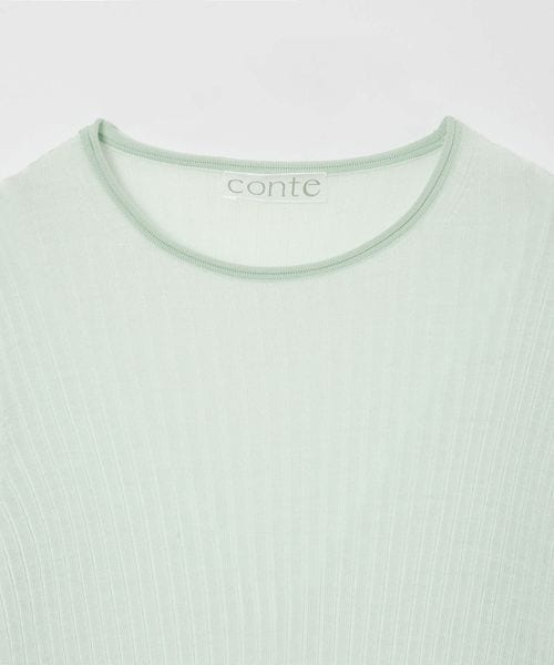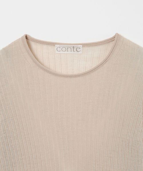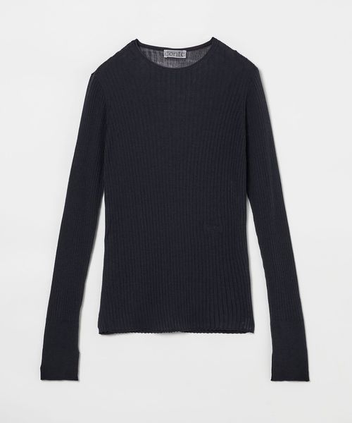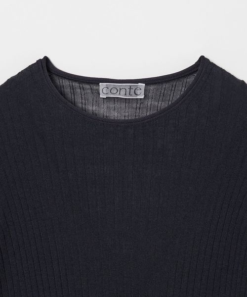 袖口のスリットデザインや同色の刺しゅうが特徴のクルーネックリブニット。