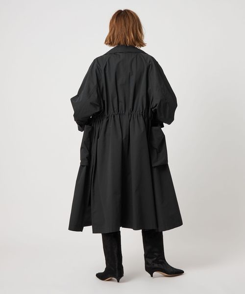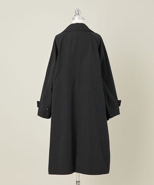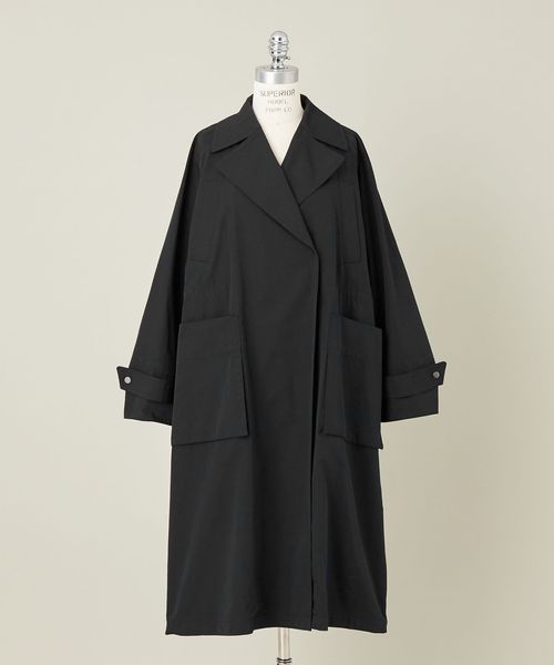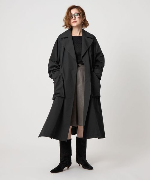 大きめの襟やポケットなどミリタリーディテールを取り入れたロングトレンチコート。