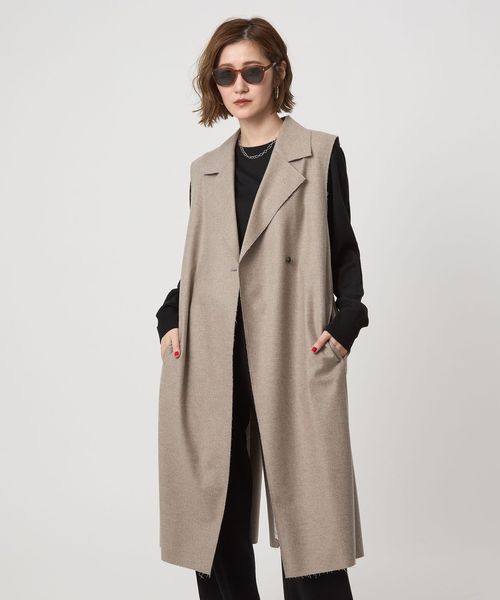 大人のカジュアルスタイルにぴったりのノースリーブロングジレ。
