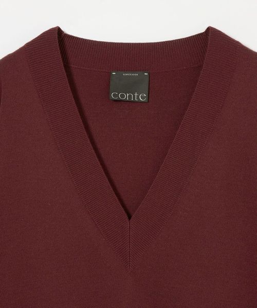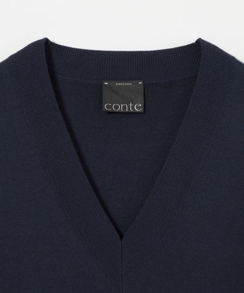 程よい厚みとシャープなVネック開きが特徴のスムース編みVネックニット。